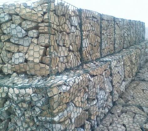 格賓籠是由金屬線材編織的角形網(六角網)制成的網箱。石籠網由高抗腐蝕、高強度、具有延展性的低碳鋼絲或者包覆PVC的以上鋼絲運用機械編織而成,運用該網制造而成的箱型結構就是石籠。